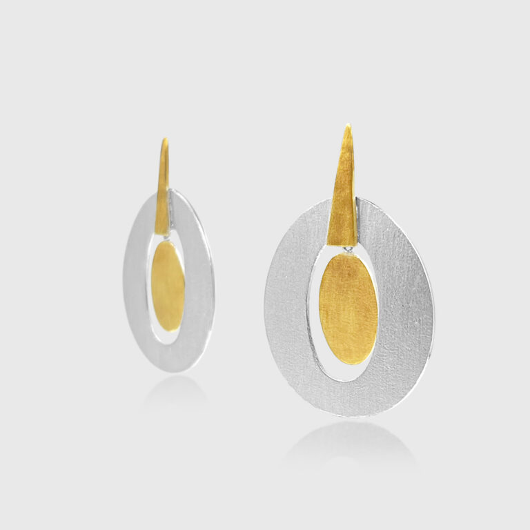 A statement in duality—matte silver and warm gold plating come together in fluid geometric form.
